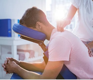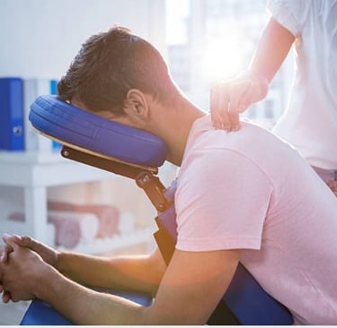 Un massage sur chaise ergonomique d'une quinzaine de minutes seulement, du crâne jusqu'aux lombaires, appuis, étirements, effleurements. Idéal,pour un moment de relâche, de détente,parfait pour les salariés en entreprise. Le massage peut-être plus long jusqu'à 45 minutes, selon les demandes de chacun.